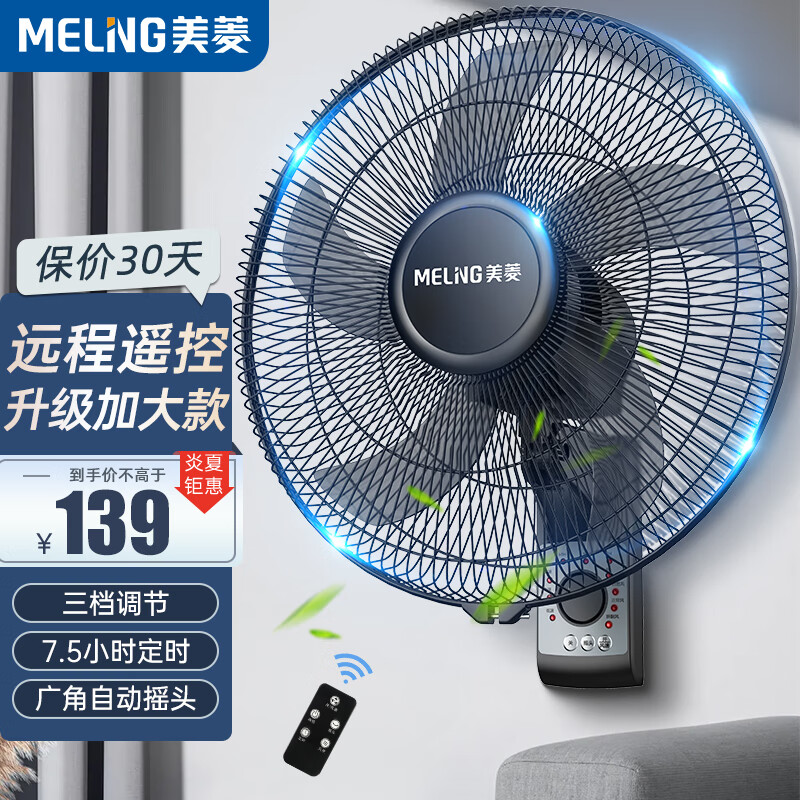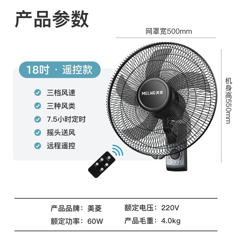 美菱MELNG 电风扇/壁扇 五叶遥控/家用餐厅宿舍摇头壁挂式风扇商用工业食堂五叶大风力挂扇FB45-2RC价格:139.00元!