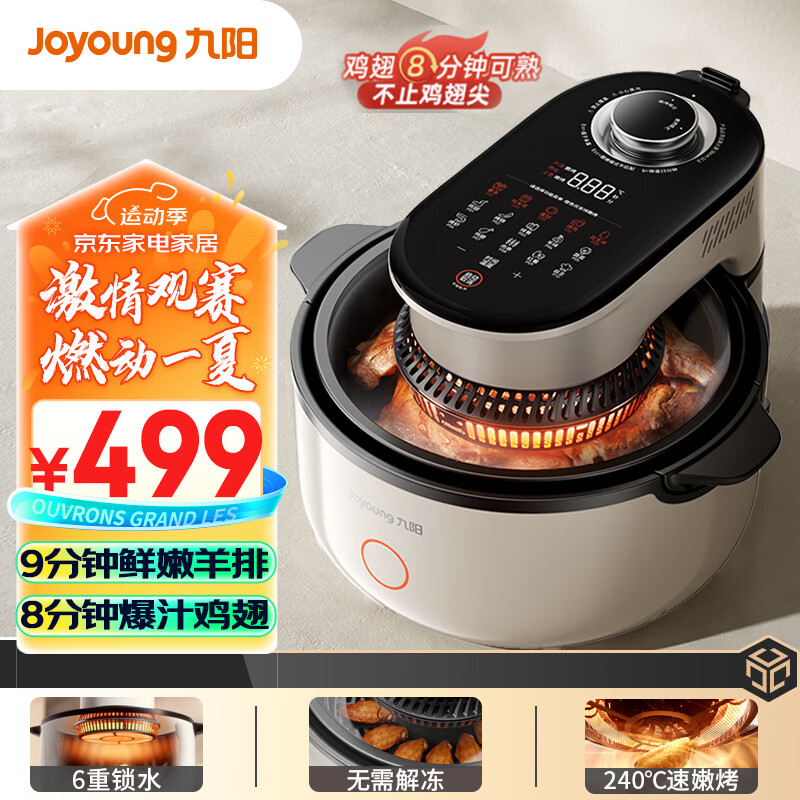 九阳(Joyoung)【米其林大厨推荐】速嫩烤空气炸锅 不用翻面 可视大容量5.5L智能无油嫩炸烤箱薯条机KL55-V1 Fast价格:499.00元!