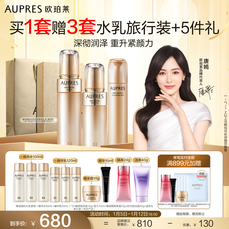 欧珀莱(AUPRES)臻源凝时精华水乳洁面护肤品套装礼盒清润型 女士礼物价格:740.00元!