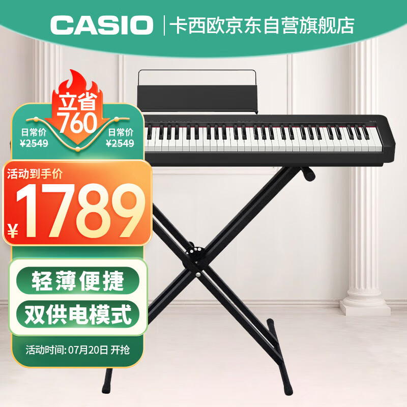 卡西欧(CASIO)电钢琴CDPS110黑色88键重锤数码电子钢琴时尚轻薄便携款+X架款价格:2549.00元!