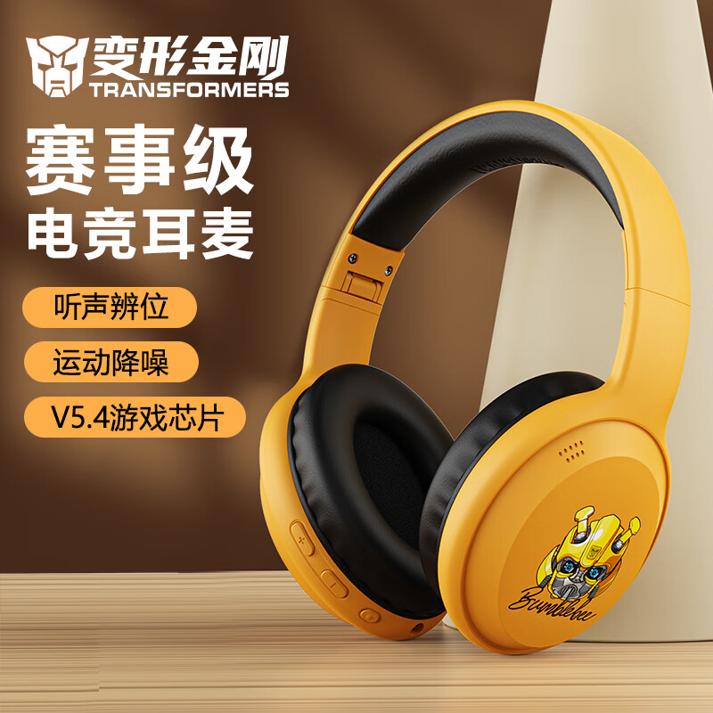 变形金刚(Transformers)TF-G06头戴式蓝牙耳机降噪高音质 蓝牙5.4真无线游戏低延迟电竞游戏重低音通用电脑华为苹果-黄价格:139.00元!