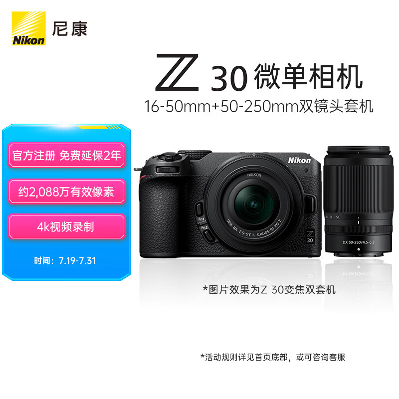 尼康(Nikon)Z30 微单相机 微单机身 无反相机 半画幅(Z DX 16-50mm+50-250mm 双镜头)4K超高清视频价格:8999.00元!