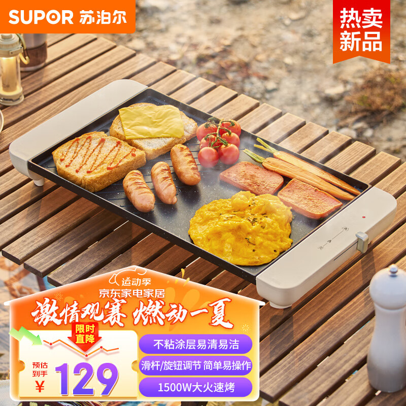 苏泊尔(SUPOR)电烤炉烤肉锅家用多功能大功率轻油少烟大容量4-6人不粘电烤盘烤肉机GJ4025P806价格:129.00元!