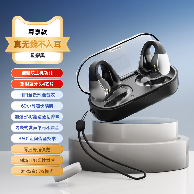 山水(SANSUI)【丨品牌力荐】TW90蓝牙耳机 骨传导概念不入耳开放式无线耳夹式夹耳跑步适用华为索尼 黑价格:75.90元!
