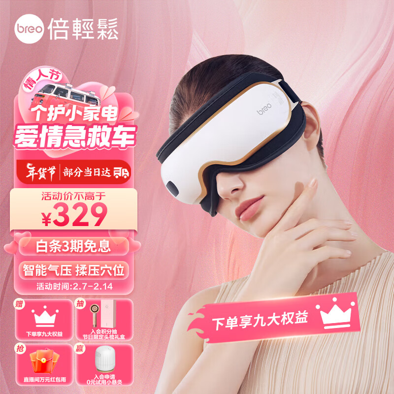 倍轻松(breo)眼部按摩仪iSee 3J护眼仪 眼部按摩器 按摩眼罩 热敷气压 情人节新年生日礼物 易烊千玺代言价格:359.00元!
