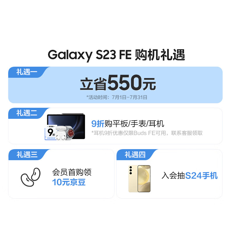 三星(SAMSUNG)Galaxy S23 FE AI手机 双光学防抖 5000万像素 拍照手机 同声翻译 5G长续航手机 8GB+256GB 浆果紫价格:3599.00元!