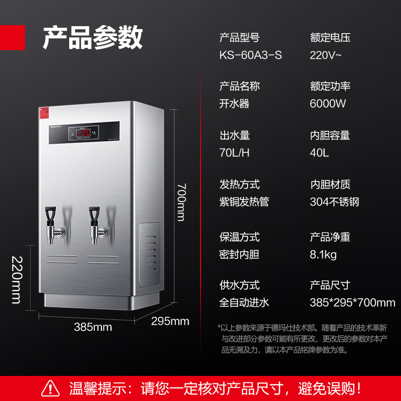 德玛仕 DEMASHI 开水器商用开水机烧水器电热工厂公司用全自动饮水机热水机热水箱 KS-60A3-S 220V价格:799.00元!