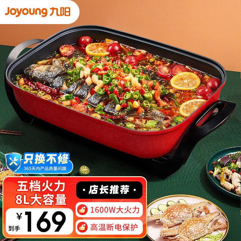 九阳电火锅多功能锅家用电热锅8L大容量涮煎炒烤鱼一体锅电煮锅HG80-G7价格:169.00元!