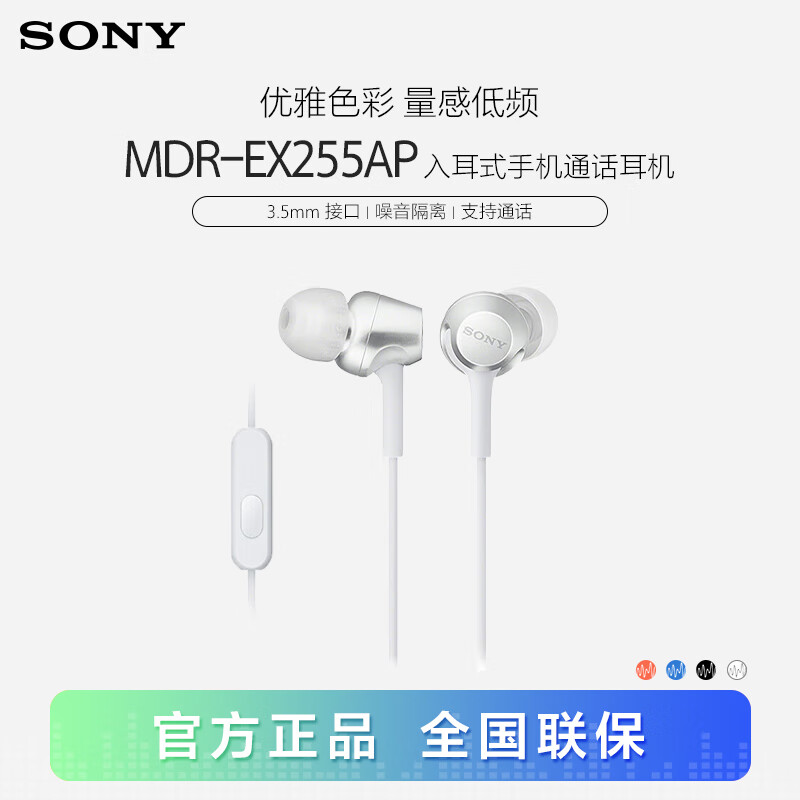索尼(SONY) MDR-EX255AP 有线耳机入耳式 3.5mm接口 带麦立体声手机通话高音质 白色价格:199.00元!