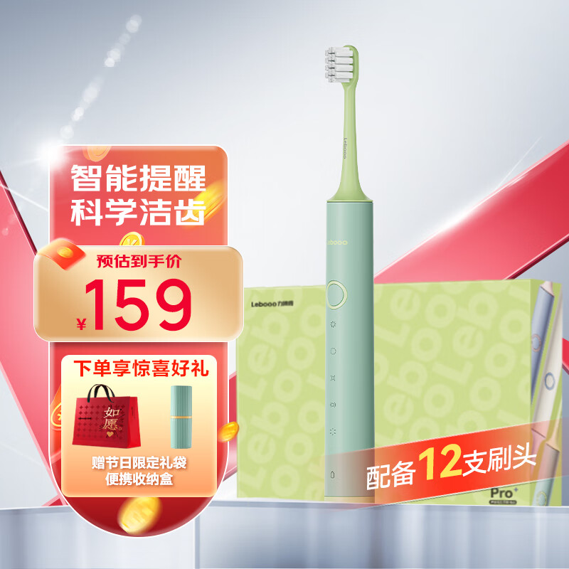 力博得(Lebooo)电动牙刷智能声波 成人情侣节日生日礼物送男友/女友 悦心Pro+ 12刷头 拒绝焦绿价格:159.00元!