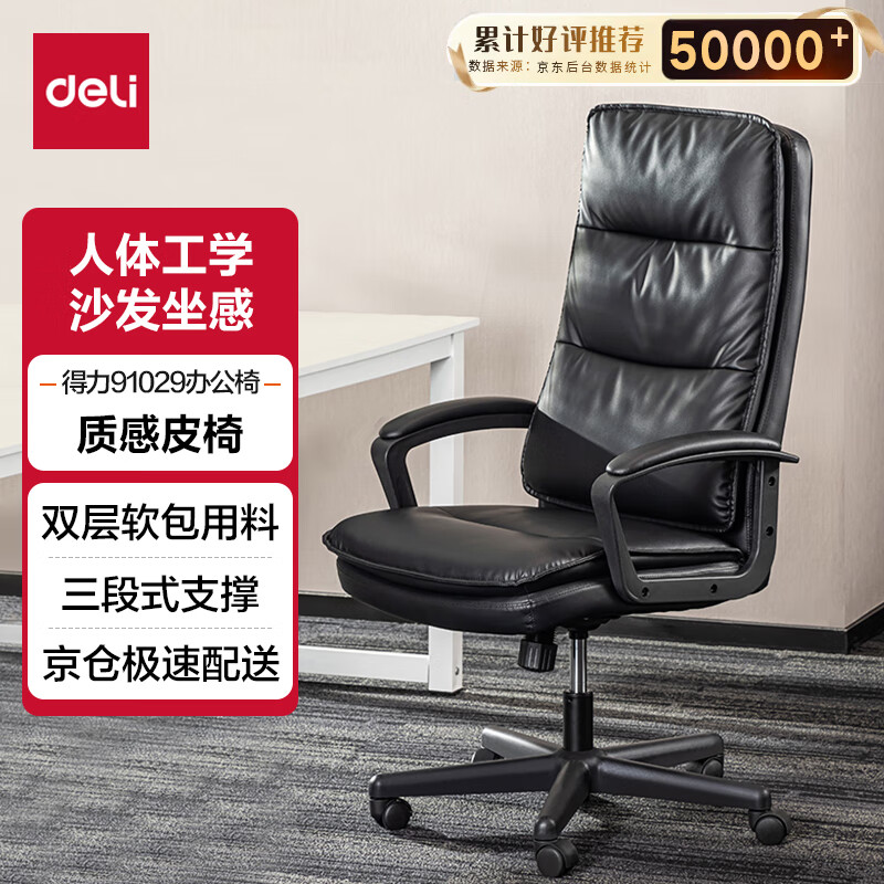 得力(deli)91029电脑椅 家用办公椅 转椅人体工学皮椅子 老板椅价格:499.00元!