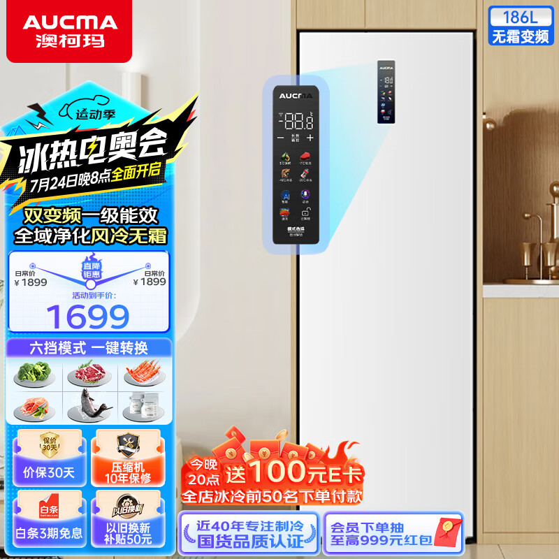 澳柯玛(AUCMA)186升立式冰柜家用双变频风冷无霜 冻藏两用抽屉式冰柜 母乳小冷柜 以旧换新 星辉白 BD-186WPHNXI价格:1739.00元!