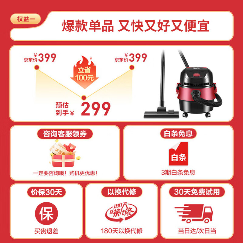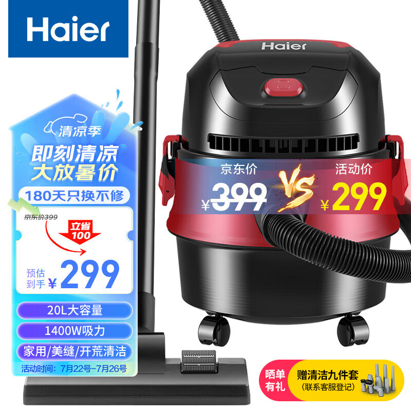海尔(Haier)吸尘器干湿吹三用大功率桶式家用吸尘器HZ-T620R价格:299.00元!