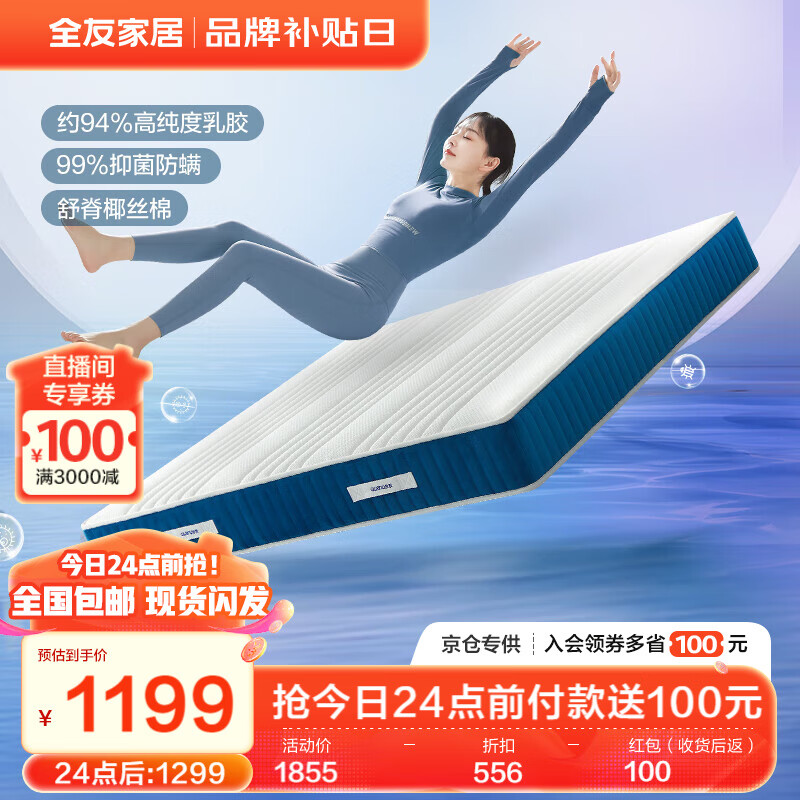 全友家居 床垫防螨抑菌进口乳胶床垫独立袋装弹簧卧室厚床垫105325价格:1855.71元!