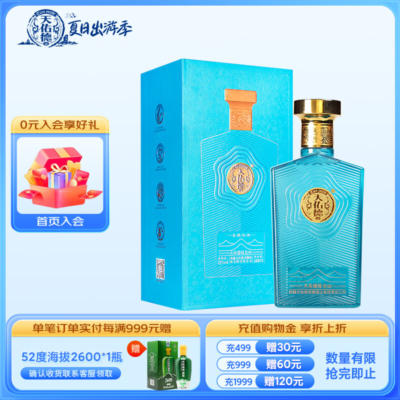 天佑德海拔昆仑山52度 清香型 白酒 500ml单瓶装【青海青稞酒】价格:218.00元!