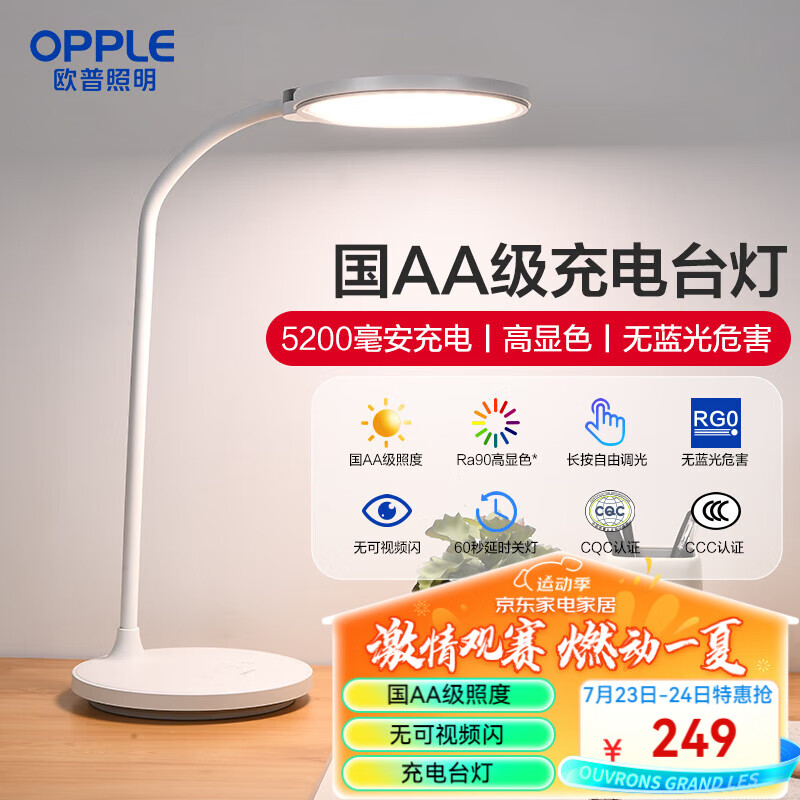 欧普(OPPLE)国AA级充电护眼减蓝光阅读触控调光儿童学生学习台灯元宸价格:249.00元!