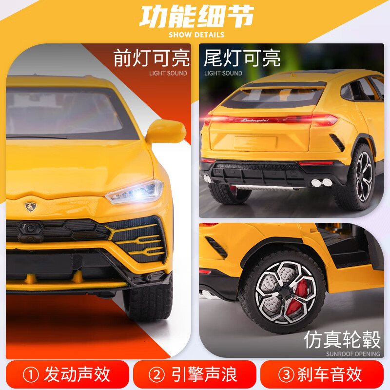 驰誉模型 兰博基尼URUS汽车模型玩具仿真合金SUV车模儿童礼物价格:64.80元!