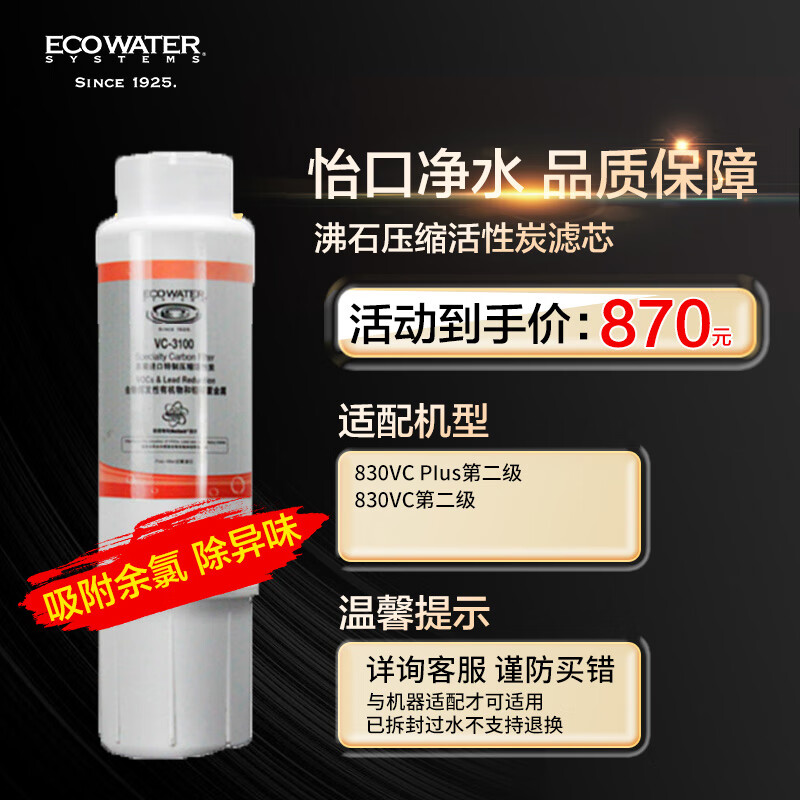 怡口净水(ECOWATER)VC-3100滤芯家用净水器耗材 除异色异味改善口感 适配(适用于830VC)机型详询客服价格:870.00元!