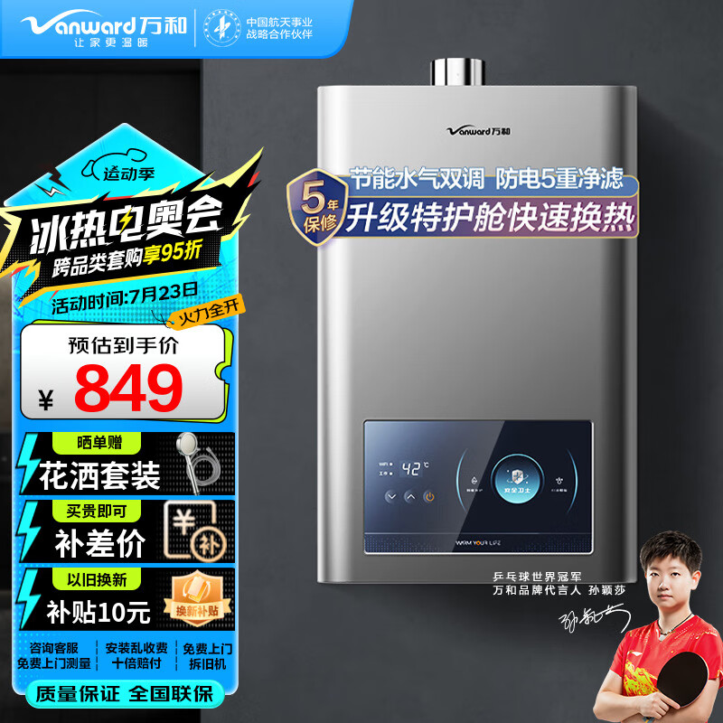 万和(Vanward)13升燃气热水器液化气水气双调恒温ECO节能5重净滤双防电保护防冻 E2D13【升级特护舱】以旧换新价格:849.00元!
