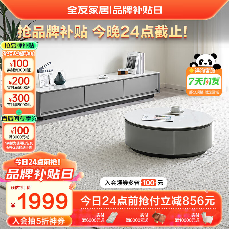 全友家居 岩板茶几电视柜组合现代简约客厅家用圆形茶几边几DW1055B价格:2855.71元!