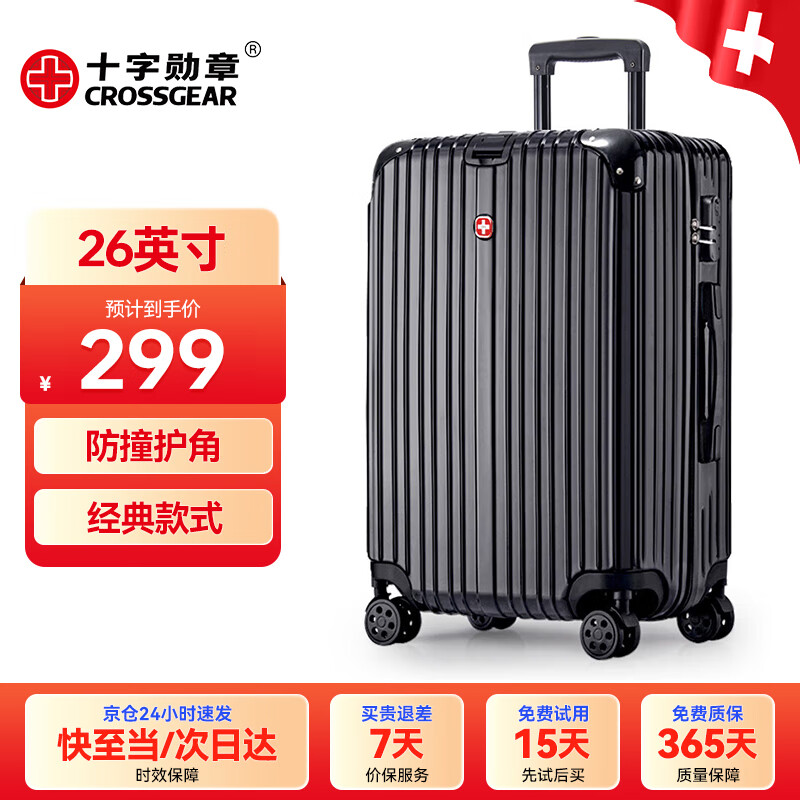 CROSSGEAR瑞士军士刀行李箱26吋出差拉杆托运大尺寸容量旅行箱男女密码箱子价格:299.00元!