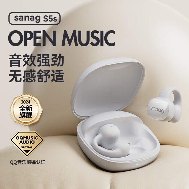 SANAG【听觉盛宴|澎湃重低音】Z53/S5S蓝牙耳机骨传导概念耳夹式耳机耳挂式运动跑步骑行高清通话防水 舒云白|杜比级环绕音效|顶配版价格:429.00元!