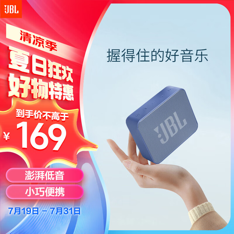 JBL 蓝牙音箱 音乐金砖青春版 GO ESSENTIAL 便携式户外音响 桌面迷你小低音炮 IPX7防水 蓝色价格:199.00元!