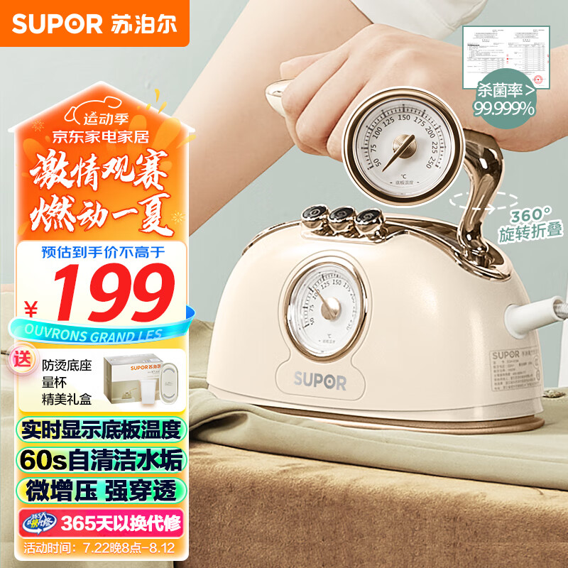 苏泊尔(SUPOR)手持挂烫机家用蒸汽电熨斗自清洁便携除菌大蒸汽大面板烫衣服旅行便携熨烫机EGH-919A价格:199.00元!