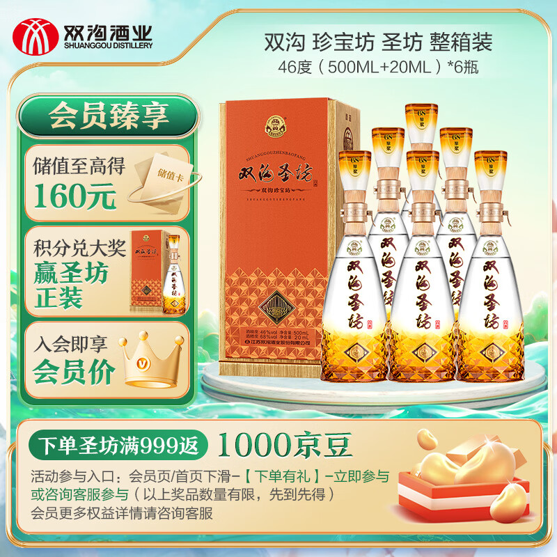 双沟 珍宝坊圣坊 46度 (500ml+20ml) *6瓶 整箱装 浓香型白酒价格:1668.00元!