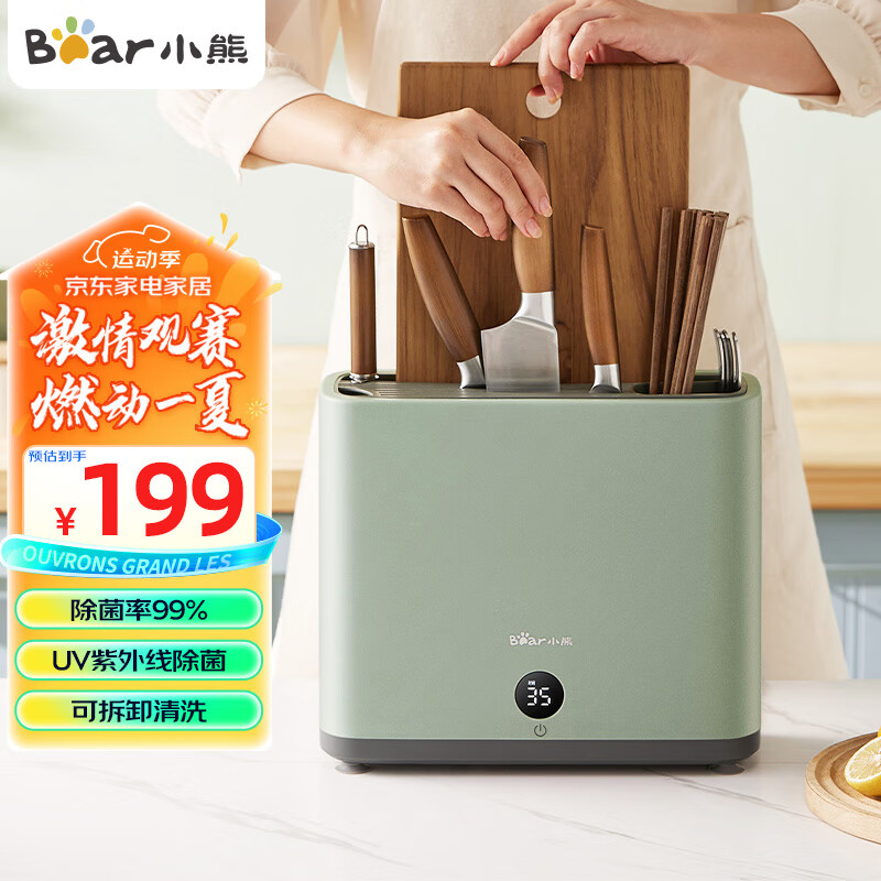小熊(Bear)刀架砧板保洁机 刀具筷子除菌机家用多功能紫外线烘干防霉收纳菜板筷子刀架 XDQ-B01Q1价格:189.00元!