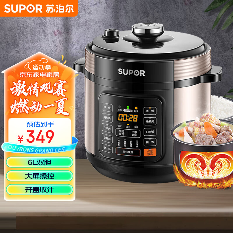 苏泊尔(SUPOR)智能电锅6L 易用大面板 焖香节能煲 开盖收汁 大火速热 一键排压SY-60YC8010E家用高压锅价格:389.00元!