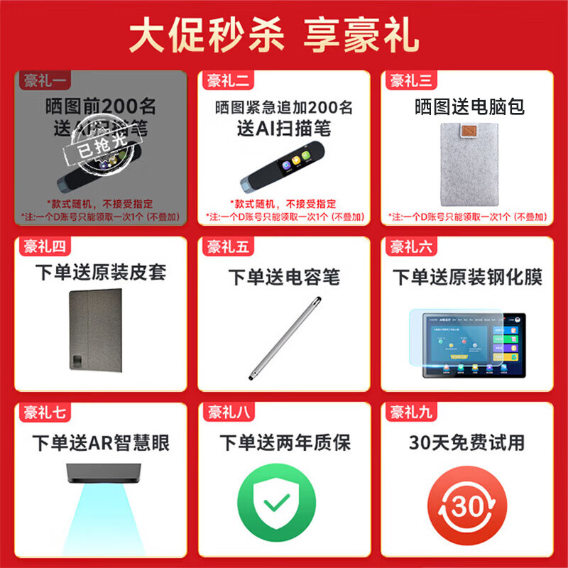 好记星【八仓速发】八核学习机 8+256G平板电脑儿童小学生初中高中教材同步英语学习上网课早教节日礼物 8+256G【全科同步教学+家长管控+AR指读】价格:1998.00元!