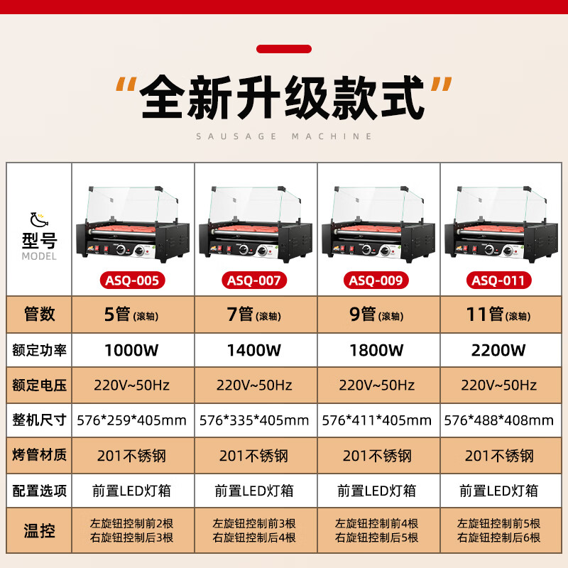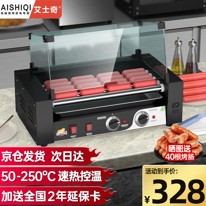 艾士奇(AISHIQI)烤肠机商用烤香肠机家用摆摊热狗机烤脆皮肠香肠火腿肠机器便利店超市电影院小吃设备ASQ-005价格:398.00元!