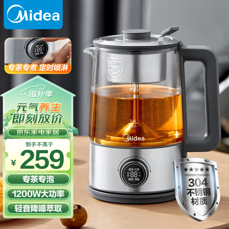 美的(Midea)煮茶器 养生壶1200W大功率花茶壶 1L大容量电水壶烧水壶电热水壶保温煮茶壶MK-C10-Pro2价格:259.00元!