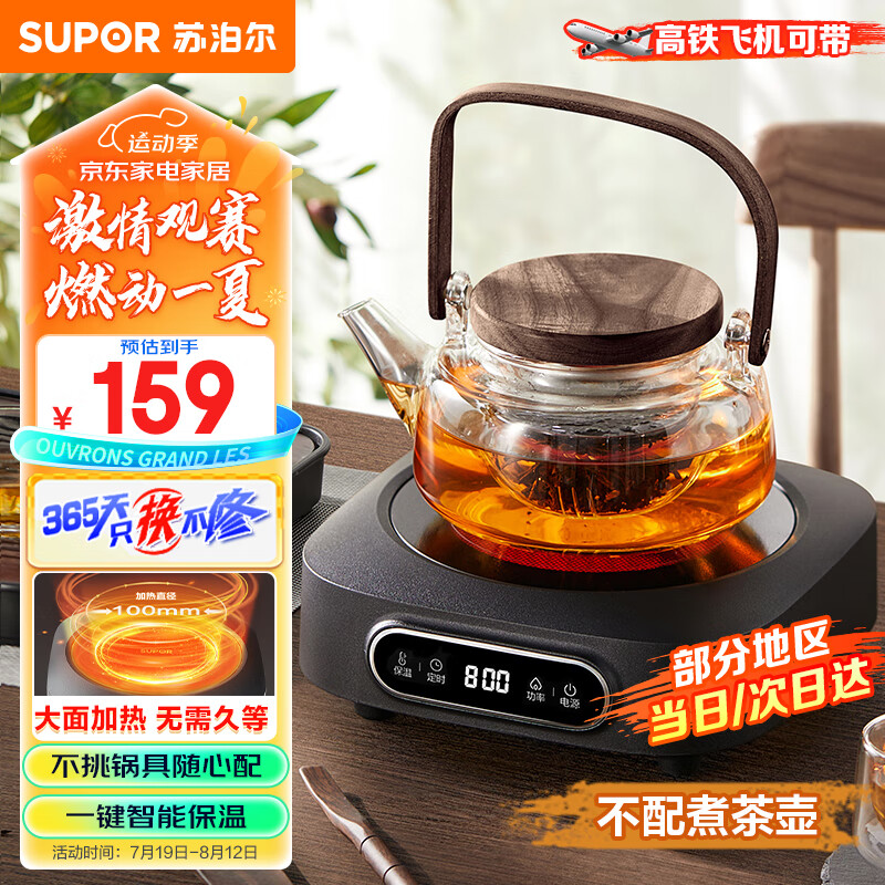 苏泊尔(SUPOR)电陶炉 煮茶器 不挑器具 办公室养生 烧水壶 泡茶煮茶炉 家用小型电磁炉 保温迷你 DTL02价格:159.00元!