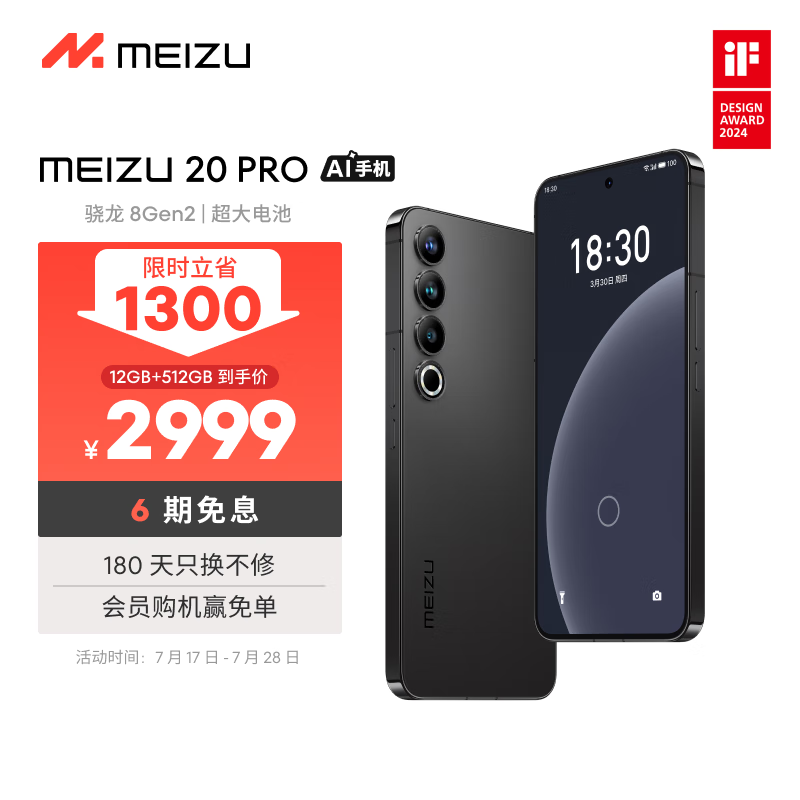 魅族(MEIZU)20PRO 骁龙8Gen2 Flyme系统 超大电池 50W无线充电 5G游戏学生拍照 领克手机域 破晓灰 12+512GB价格:2999.00元!