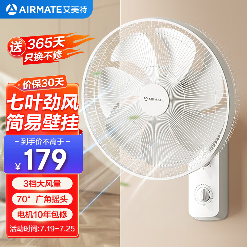 艾美特(AIRMATE)电风扇商用壁扇壁挂式风扇家用摇头转页扇餐厅宿舍食堂工业工程风扇七叶定时墙壁风扇 FW3547T2价格:179.00元!