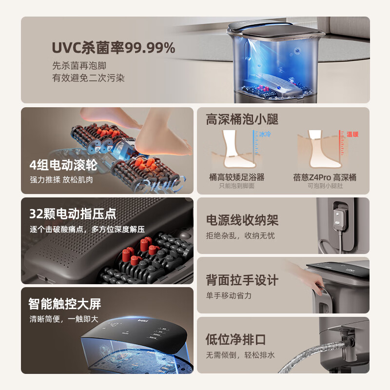 蓓慈(beici)泡脚桶紫外线杀菌足浴盆电动按摩洗脚盆自动加热足浴桶恒温泡脚盆生日七夕情人节礼物Z4Pro价格:469.00元!
