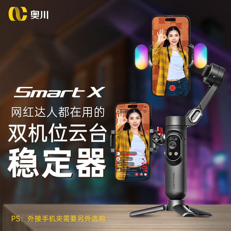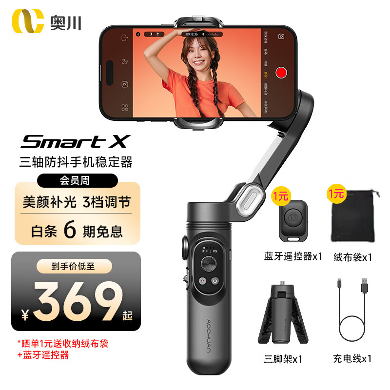 奥川 手机稳定器防抖小巧双机位便携可折叠vlog神器智能手持云台直播 SMART X黑色标配价格:399.00元!