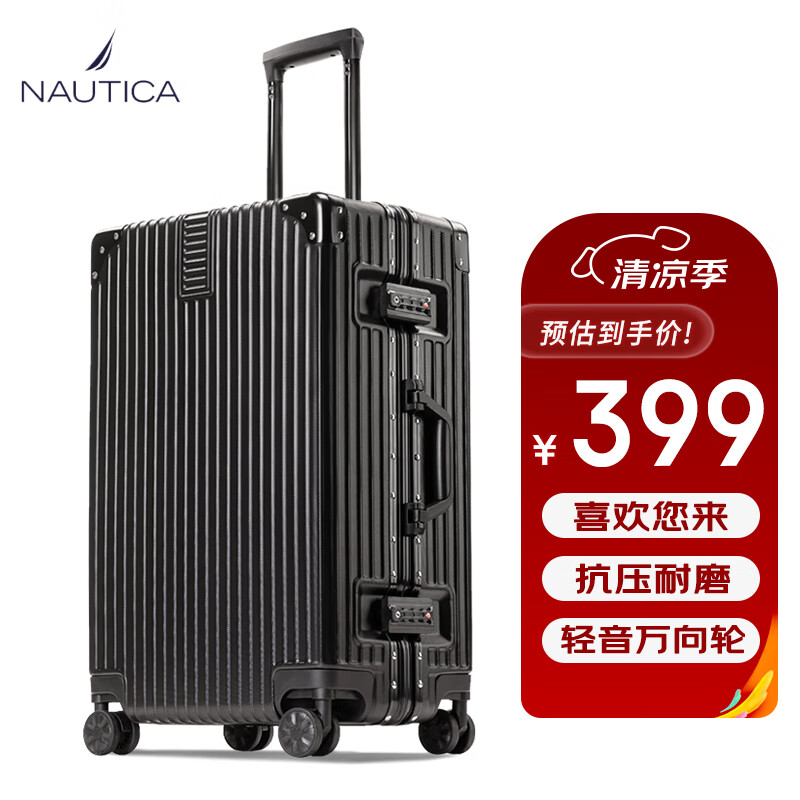 NAUTICA行李箱男大容量旅行箱铝框密码箱万向轮结实拉杆箱34英寸黑色箱子价格:429.00元!