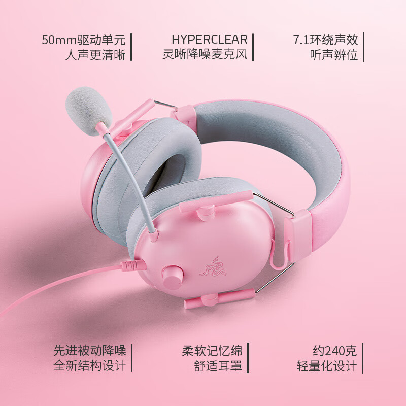 雷蛇(Razer)旋风黑鲨V2 X 有线头戴式电竞游戏耳机耳麦 被动降噪 吃鸡神器 粉色价格:319.00元!