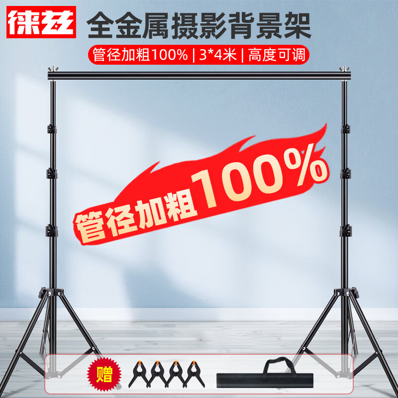 徕兹 3*4米直播摄影背景架绿幕支架绿幕布抠像拍照背景布支架人像证件照拍摄加粗便携伸缩龙门背景架价格:399.00元!