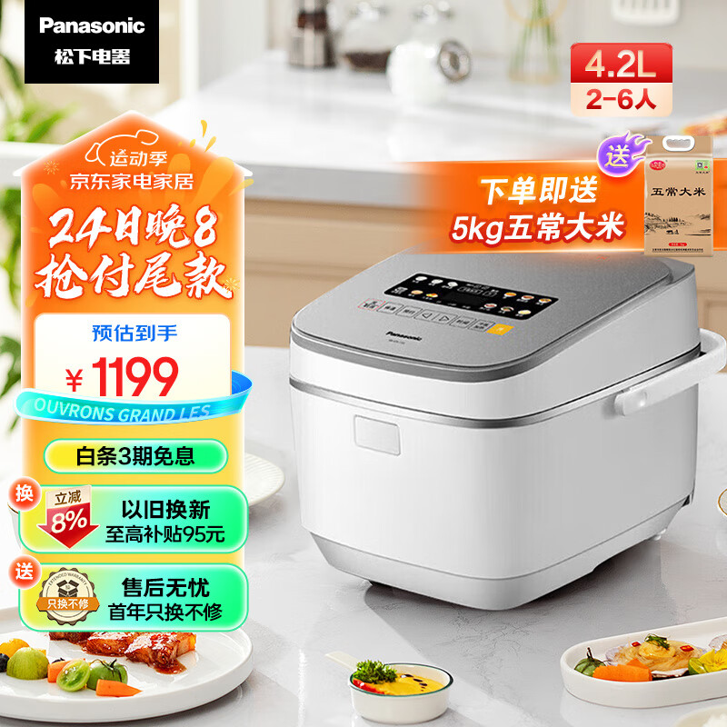 松下(Panasonic)电饭煲电饭锅4.2L IH电磁加热 备长炭铜釜 一键式可拆洗 不锈钢内盖 SR-HTL155价格:1199.00元!