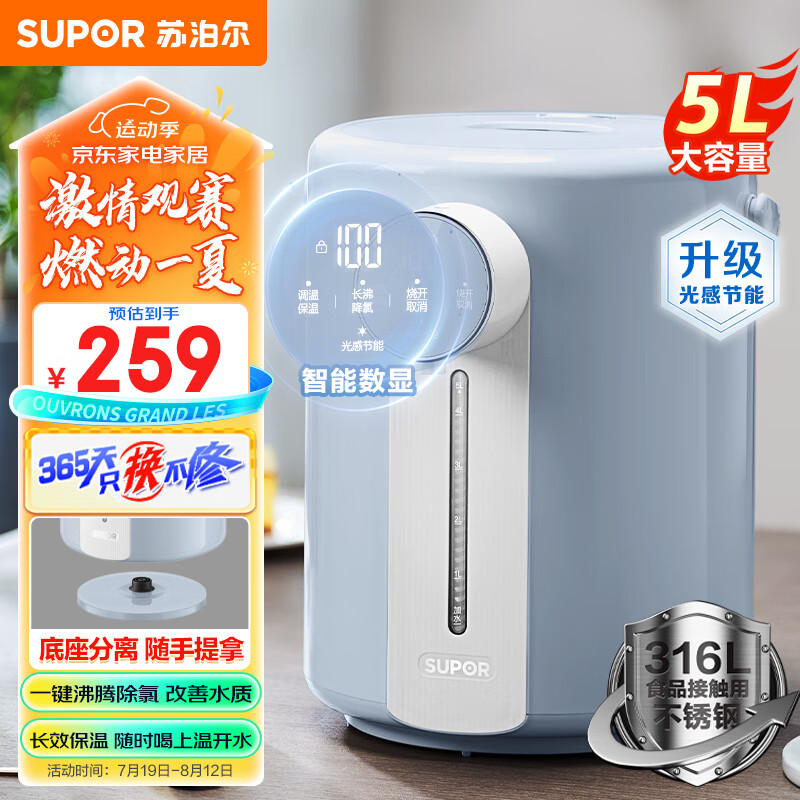 苏泊尔(SUPOR)电热水瓶 5升大容量 电水壶开水烧水壶恒温电热水壶【升级版】可保温煮水壶SW-50T109B价格:259.00元!