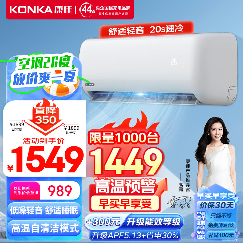 康佳(KONKA)1.5匹 新能效 快速冷暖 舒适节能 第四代自清洁 变频壁挂式空调挂机 以旧换新 KFR-35GW/HV3价格:1549.00元!