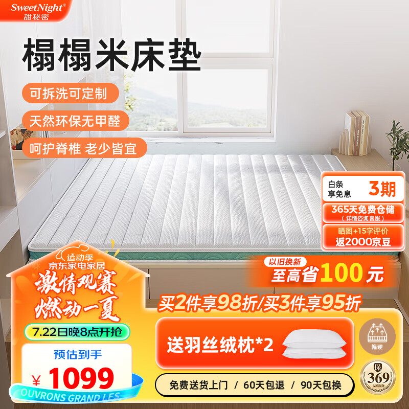 Sweetnight榻榻米床垫天然椰棕床垫8cm床垫子 可定制 甜秘密丹左B款 1.5x2米价格:1099.00元!