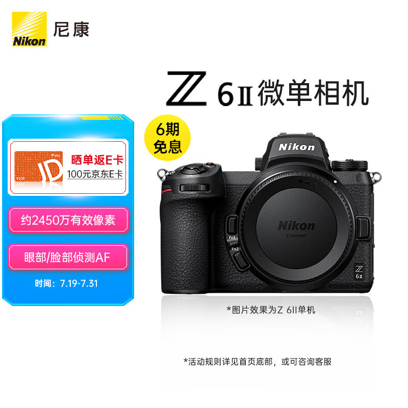 尼康(Nikon)Z6II(Z6 2/Z62)全画幅微单机身 微单机身(约2,450万有效像素 5轴防抖)价格:10999.00元!