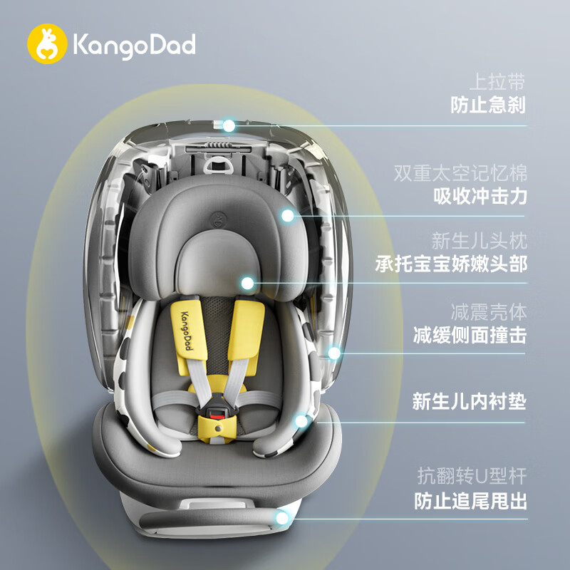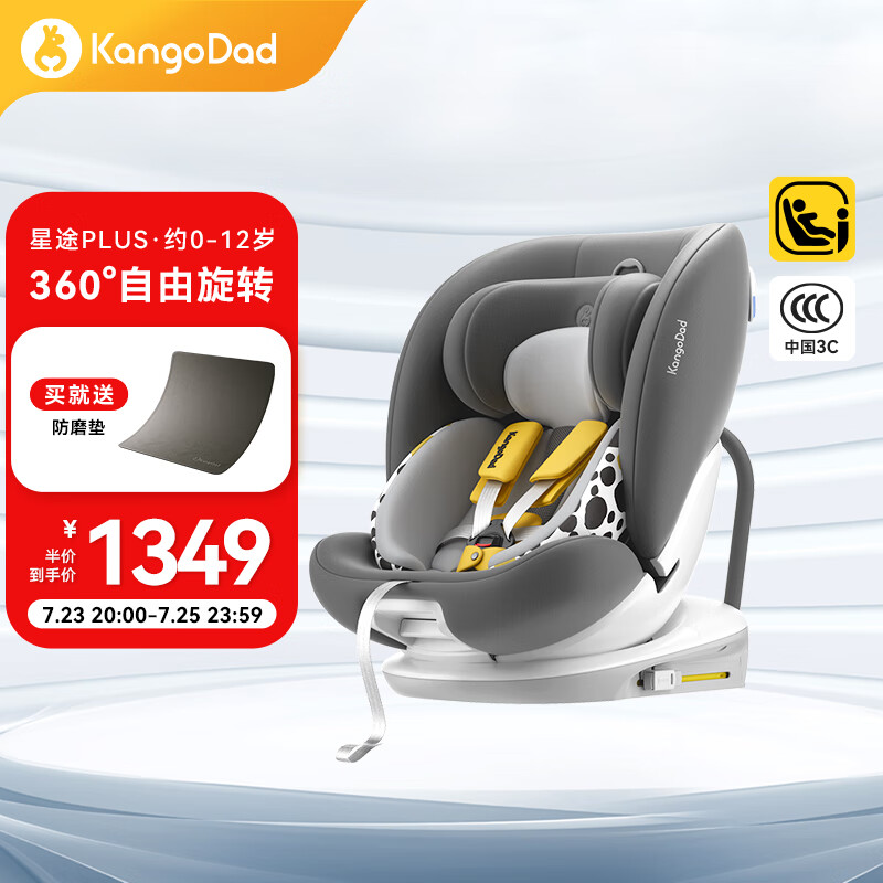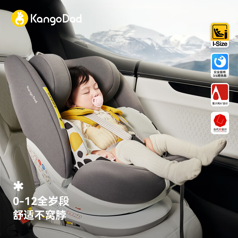 袋鼠爸爸(EURO KIDS)I-SIZE级0-3-12岁360度90度悬停汽车儿童座椅 星途PLUS星空灰价格:1598.00元!