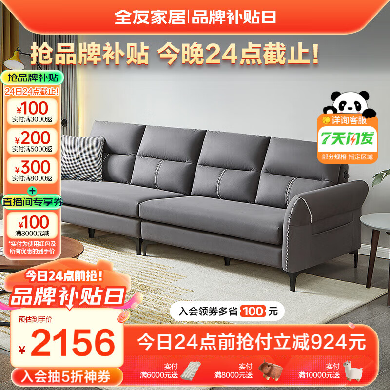全友家居 现代简约功能科技布艺可拆洗储物小户型直排沙发客厅102679价格:3080.00元!