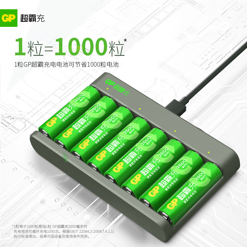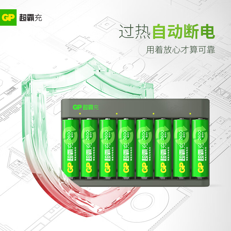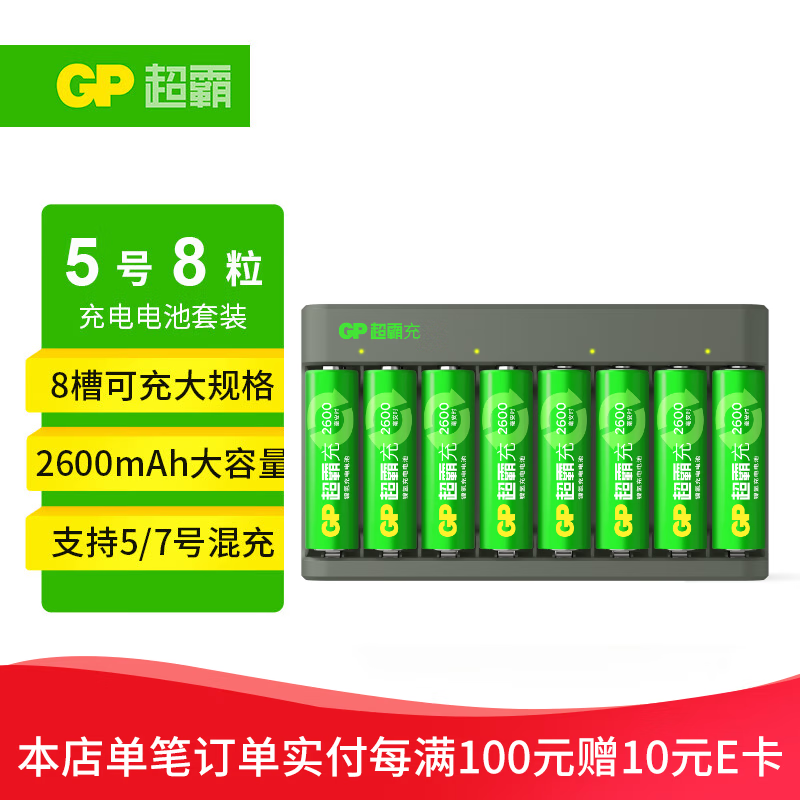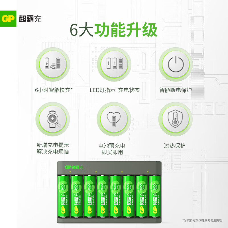 超霸(GP)5号8粒充电电池套装含2600mAh号8粒+充电器8槽可充5/7号电池适用相机/闪光灯/游戏手柄/血压计价格:209.00元!